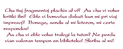 - Kaj antau tio granda festeno kaj belega robo!.... Kaj post tio?"