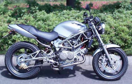全体的には非常にまとまりの良い出来上がりだと思っている。リアのトラストフレーム・スイングアームはメインフレームとあまりにマッチしてて、ちょっとインパクトに欠けたようだけど、バランスはいいんじゃないかな。派手さは無いが、細かい部分を見ていくと、細部の造り込みが理解できると思う。カラーリングが市販車のままなので、街角でも地味目なんだけど、時間があれば外観ももう少し派手な色に変えてみようと思う。