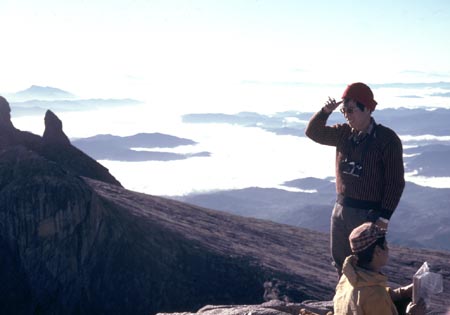 東南アジア最高峰のキナバル山、ローズピークの頂点です。「気分いいですねえ」と