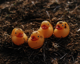 はさまっちゃった ラバーダッキーです。 あの、お風呂に浮かべるあひるです。 かわいいのでいくつか写真を 撮ってみました。 これがきっかけで、ホームページも 作ってしまいました。 |
