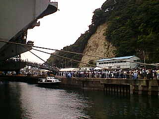 時頃。既に数千人が行列をしてまして、船内には入れなかった。回りの写