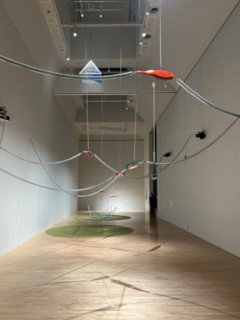 疑似餌を拡大したオブジェを挟み込んだスプリングを頭上に張り巡らせて間欠的に振動させる『測深線』«Sounding Lines» (2024) の、