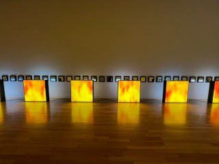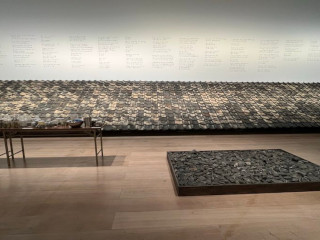 元イギリス領カリブのガイアナとバルバドスのそれぞれの出身の親を持つアフロ・カリブ系イギリス人作家による個展です。 ワークショップを通して挙げられたブラック・ブリティッシュの女性歌手の名前が書かれた壁と、 音楽やファッションの雑誌の切り抜きから作られたプラカード様のものからなるインスタレーションです。 よくよく見ていると南アジア系と思われる人も含まれてるようにも思われブラック・ブリティッシュの定義に釈然としないものがあったものの、 音楽を通して知った名も多くありましたが、改めてカリブやアフリカなどから来た人々のイギリスのポピュラー音楽をはじめとする文化への寄与を意識させられました。