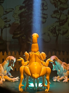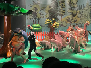 電子音響の Klara Lewis は主に Edition Mego レーベルからリリースしているミュージシャンです。 (あまり強調することでもないとは思いますが、自分にとっては Wire / Dome の Graham Lewis の娘という印象が強いのですが。) こんな舞台の随伴音楽の仕事もしているのか、と。 上演中に舞台上にはいませんでしたが、カーテンコールで出てきたので、電子音響も生演奏だったのかもしれません。