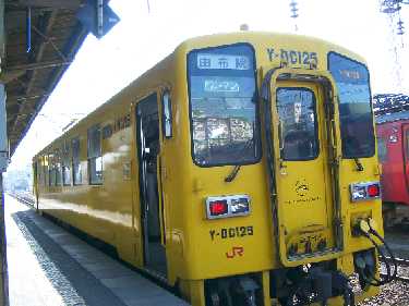 行きは大分から…便数ないんだよなあ、各駅停車に乗り込むが、これが1両編成の真っ黄色の可愛いディーゼル車。各停でも1時間ほどっす。大分の比較的なだらかな山を眺めながらゆっくり進む。そのうち由布岳が見えてくると由布院駅。駅も観光名所っぽく作られてるっすね。