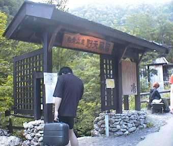 湯から上がって木の長いすで渓流を見ながら休み、さらに湯へ。これを何度も繰り返す。う〜む、いいかも。なお、カランが3つだけあるので、すいている時期なら風呂としてちゃんと使えるっす。ボディソープは付いているがその他は無し。どうもこの辺りの山で登山してきた客が立ち寄っているようっす。「山好き風」なワカモノ多し。
