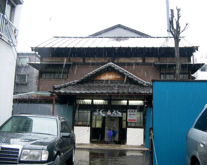 東京でもAクラスのレトロ銭湯、千歳船橋の船橋湯に行ってきたっす。銭湯マップには「駅前0分」と書いてあるが、まさに駅出口正面のブロック内にあるっす。しかしまあ、こんな一等地に、昭和20年代の映画から抜け出してきたような一角が。マップには「駐車場」マークがついているが、要するに車とめれるだけの空き地があるっつーことね。