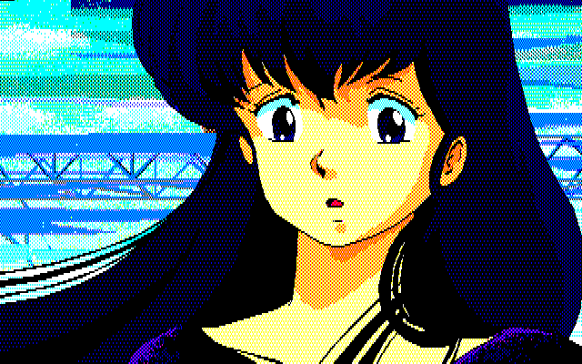 そ〜んな訳でやっぱり16色や256色をいまだにかいてたりする。ちなみに、メイン画面の受付嬢5人は背景で16色人物16色と別々に作成して合成したCGです。ですから16色でかいた256色ね(笑)