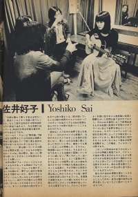佐井好子、森田童子、坪田直子の3人の女性シンガーの紹介記事。佐井好子のモノクロ写真4点。撮影:柳原茂光。記事は6ページ。