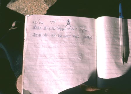 山頂には登山者がサインをするノートが置いてあり、早速サインをしました。サインの