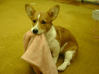 あそぼ お気に入りのボアシーツです。 遊びたくなると、 こうしてくわえてやってきます。 引っぱりっこが大好きです。 |