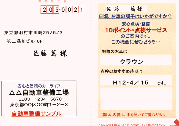 カーソルをハガキの上に置くと裏側のイメージも見られます。