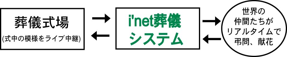 | i'net葬儀とは、実際に行なわれている葬儀の模様をインターネットを通じてリアルタイムで見聞きでき、弔問できるシステムです。式当日は葬儀の模様を現場からライブ中継し、ホームページ上に掲載します。同時に告別式にはネット上で弔問を受けられます。