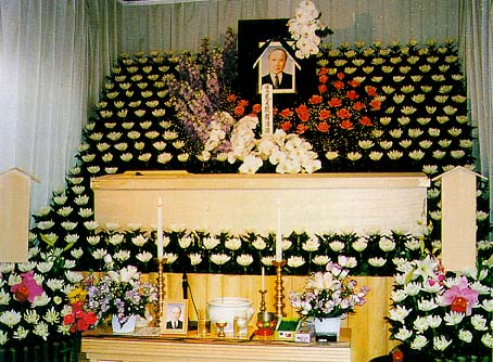 従来の白木祭壇と比べスペースが有効に使え、見た目も美しく、コスト的に大差がないため最近ではこの形の方が増えてきております。但し、神式では特別な祭壇を組むためこの形はありません。仏式・キリスト式・無宗教式等にお勧めいたします。