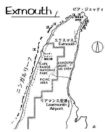 グレイトバリアリーフよりは小さいが結構大きなリーフ。パースの海と違って年中暖かい。3月から4月にかけては、あのジンベイザメが出る。このころはプランクトン(ジンベイのえさ)が多いので透明度は落ちるがそれでも20mぐらいは見える。ジンベイを見るツアーに参加すれば、ほぼ100%(!)に近い確立で3m〜8mぐらいのジンベイザメにお目にかかれる。ただし、ほとんどスノーケリング。人懐っこい子供のジンベイがボートの周りをくるくる泳ぎまわることも・・・。運が良ければウミガメにも会える。この時期は同時にタイガーシャークが出る時期でもある。サンゴの産卵もこの時期。7月から8月には野生のジュゴンが出る。しかし、これはさすがに運が良くないと見られないようだ。4畳半(!)ぐらいのマンタ、ブラックマンタも出る。カツオノエボシも出るので気をつけて!私がいる時も1人救急車で運ばれていた。全体的に魚は大き目。