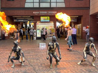 18日はちょうどプラザ (世田谷線駅前の広場) で大駱駝艦の大道芸を久しぶりに観ることができ、全くの徒労とならずに済みました。