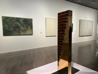 アンフォルメルや抽象表現主義と同時代を感じさせる抽象的な絵画が主ですが、