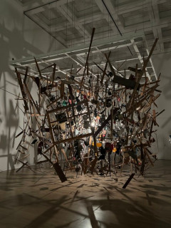 Cornelia Parker の家が爆発した瞬間を凍結したかのような空間インスタレーション