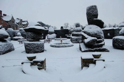 | 朝起きると一面が銀世界に変わっていました。 中庭のトピアリーも真白、まるで「ライオンと魔女」の雪の別世界の様なメルヘンの世界ですね。 ![]() |
