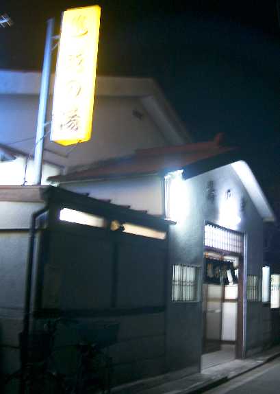 地方型のミニ銭湯だが、それにしても綺麗な感じの、こじんまりとまとまった銭湯っすねえ。こんな街はずれにちょっと意外な雰囲気。長いす、古いソファ。上から覗きこむタイプの体重計。男女の境にはTV、やはりイラク問題が延々と。ところで、イラクに銭湯ってあるんだろか?ロッカーは8個ほどあって、松竹の鉄板錠。脇に丸籠が積んであるっす。多分、ほとんどの客はこっちの丸籠を使うんだろうなあ。