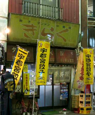 市街中心部に戻る。オリオン通りっつー市の繁華街を過ぎて…この辺りに餃子屋が結構あるはずだな。この間来たときは「みんみん」に行ったから、今日は「きらく」に行こうか…繁華街の中に突如、超レト〜ロな昭和中期型飲食店出現、昭和35年から営業している「きらく」っす。なんか暖簾も結構年季が入って凄い。