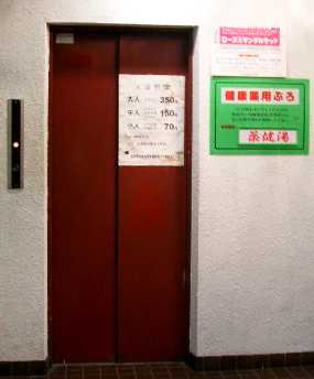 結構古いビルっす。入り口は花王のふろや暖簾。古いビル銭湯っぽい、雑然としたフンイキっす。下足入れは結構数が多い、っつーことは賑わっていたっつーことだな。下足板の鍵はなんとKING。完全フロント形式、フロントで350円払うっす。その他貸しタオル等も置いてある模様。