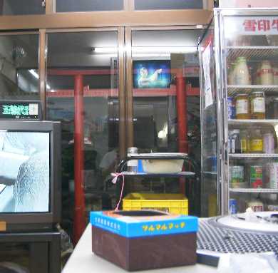 脱衣場真ん中に広々とした休憩スペース、テーブルにはむろんスポーツ新聞。で、びっくりしたことに、この銭湯なんと…「煙吸い込みテーブル」がついているっす。会社とかの喫煙ルームとかにある、あの例のファンで煙を吸い込むテーブルっす。こんなの置いてある銭湯は珍しい。高いだろうになあ、が、確かに嫌煙派にとっては、湯上がりに清潔になったところに煙臭くなるのはたまるまい。逆に愛煙派にとっては、これまた湯上がりの一服はたまらんのだよねえ。なるほどなあ、やるなあ。