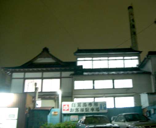 鷺宮の白鷺湯へ。駅を降りて南側、妙正寺川に沿ってずっと進むっす。この辺り、古くからの団地があるんだな…10分ほどで巨大煙突発見。銭湯入口はかなり奥まったところにあるっす。で、手前になぜか結構大きな駐車場。この配置はなんかヘンだなあ…なんか由来があるんだろうなあ。脇から見ると、典型的な木造伝統銭湯の造りがはっきり分かるっす。