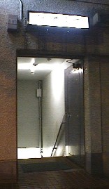 で、入り口…これが絶句。通り沿いの入り口は、風呂屋らしいものが何もない。白い看板に「浴場入り口」と書いてあるだけ。しかも地下に向かう怪しい階段。これじゃあ本当にクラブだぜ。銭湯マップを持っていなければ、まず銭湯とはわかるまい。まあとりあえず階段を降りて地下へ。