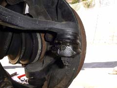 とりあえずロアアームのボルトを引っこ抜いてみる。簡単に抜ける。