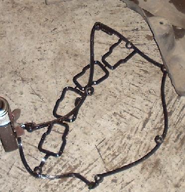 原因はこの部品↓、タペットカバーのゴムパッキンが劣化していました。